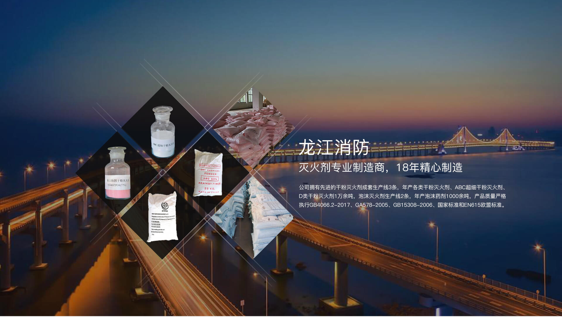 江山市龍江消防材料有限公司成立于2002年8月,是一家專業(yè)從事:干粉滅火劑、ABC超細干粉滅火劑、泡沫滅火劑、D類干粉滅火劑、D類滅火器、車載滅火器開發(fā)、生產、銷售的浙江省科技型企業(yè),公司現有員工80多人,固定資產2000萬元,占地面積10000㎡。